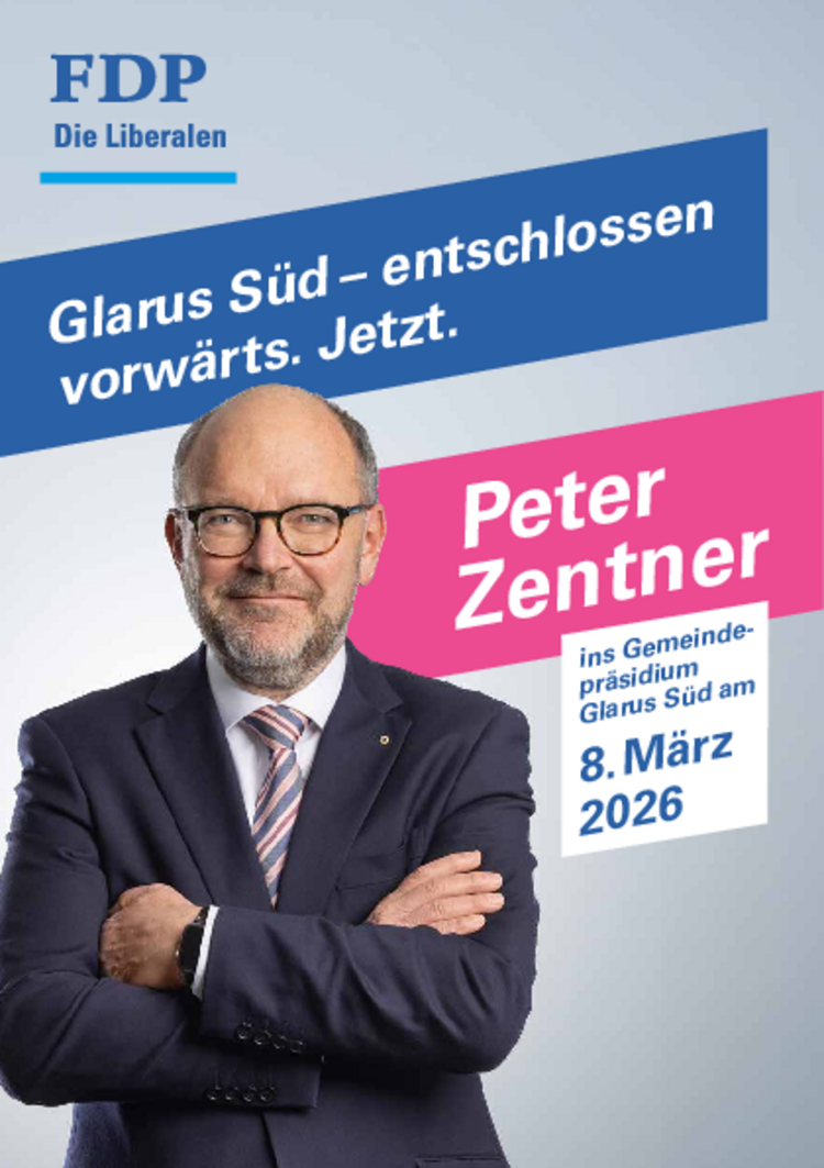 Mit Peter Zentner schickt die FDP Glarus Süd eine führungserfahrene Persönlichkeit ins Rennen, die für Verlässlichkeit, Tatkraft und eine tiefe Verbundenheit mit der Region steht. Die FDP ist zuversichtlich, den Wählerinnen und Wählern mit Zentner einen kompetenten Macher präsentieren zu können, der die Herausforderungen der kommenden Jahre im Präsidium mit grossem Sachverstand und Ruhe angehen wird.